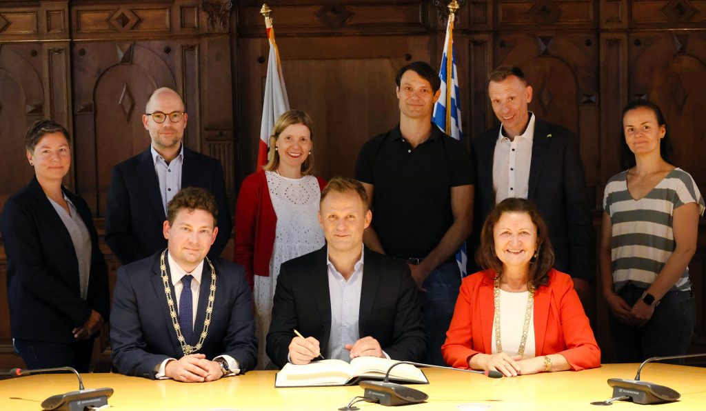 Juli 2025: Am Hans-Carossa-Gymnasium in Landshut haben alle Fünftklässler vier Stunden Sportunterricht pro Woche, davon zwei Stunden Judo. Kurz vor den Sommerferien durfte ich als Judo-Gasttrainer vor Ort sein und die Begeisterung der Schülerinnen und Schüler hautnah miterleben. Weiter so! Besonders freue ich mich über die Unterstützung der Stadt Landshut – und die Ehre, dass ich mich nach dem gemeinsamen Training im Rathaus ins Goldene Sportbuch eintragen durfte.